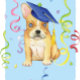 Félicitez votre diplômé favori avec un cadeau avec un joli diplômé du Labrador Jaune Retriever portant un mortier au milieu d'une flûte de confettis.