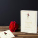Elégance intemporelle : mariage traditionnel minimaliste de roses rouges avec typographie de script or et arrière - plan d'ivoire.