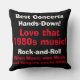 My Original 1980s Retro Music Citation Texte Disant Graphic Design. Amusant rétro rétro des années 1980 musique lancer oreiller. Avec le libellé sur Front of Coussin, 80s, Love the 80s Big Hair Bands, Best Music, Best Singers Ever. Back of Coussin a le libellé, Best Concerts Hands-Down, Love that 1980s Musique, Rock and Roll, When Music was Music and Singers can Sing. Arrière - plan noir avec texte blanc et rouge et police drôle avec des globes oculaires rebondissant sur les lettres. Amusant pour tous ceux qui aimaient et aiment encore les grands groupes de cheveux des années 1980 et la grande musique et les chansons qu'ils nous ont donné avec beaucoup des plus grands chanteurs qui ont pu chanter et vous saviez ce qu'ils disaient! Parfait pour la chambre familiale, chambre pour enfants, dortoir, salle de jeux avec polices de couleurs noir et rouge de différents styles avec des globes oculaires rebondissants. Design original © 2016 TamiraZDesigns.