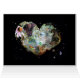 Petits morceaux de vie ! Un monde imaginaire en forme de coeur. Beaucoup de détails à voir, l'évidence : un papillon, une fée, une croix verte, une colombe et les moins évidents, un chien observant une balle : -) Profitez ! Cadre disponible dans la catégorie "cadre carte" !