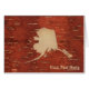 Happy Alaska (of Perf Fund) Dag! Een digitale recreatie van een silhouetkaart van Alaska, gevormd door het roodbaarse buitenoppervlak aan de achterkant van de berkenschors (Betula papyrifera) zorgvuldig af te schrapen om de lichtere, gele laag onder de bodem te onthullen. Dit is een traditioneel ambacht onder inheemse Amerikanen/Eerste Naties in het noorden van de Verenigde Staten en Canada. U kunt uw eigen tekst toevoegen, zowel boven als binnen.