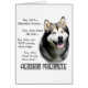 Een komische manier om mensen te vertellen dat je hond een Alaska Malamute is. Dit hondenontwerp bevat de antwoorden op enkele van de meest voorkomende vragen die u altijd wordt gesteld over uw favoriete hondenras. Als u een ander hondenras in dit ontwerp wilt gebruiken, kunt u een e-mail sturen naar greywolfcreation@yahoo.com.