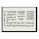 Une copie d'un travail original de broderie, cette carte comporte cinq polices hébreues originales, soigneusement disposées avec quelques cloches et grenades sacerdotales pour finir le motif ! Écrivez une salutation amicale à un amant semblable de la langue hébreue, au manieur de mots, à l'embroiderer ou au célébrant de mitzvah de bar/t.