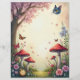 Verdwaal in een grillige paddenstoelentuin met dit prachtige papier met een Alice in Wonderland-scène. Het toont een charmante illustratie van het hoofd van de Cheshire Cat dat boven paddestoelpaddenstoelen zweeft, met vlinders, bloemen en een zakhorloge eronder. Met onbeperkte creatieve mogelijkheden is dit papier perfect voor uitnodigingen, scrapbooking, junk journaling en andere gepersonaliseerde projecten. Gedrukt in hoogwaardige, full-colour op dun mat papier, is het ontworpen om een scherpe, professionele uitstraling te geven aan uw persoonlijke of zakelijke mailings. Voeg persoonlijke foto's en tekst toe zonder extra kosten, waardoor het een veelzijdige en gedenkwaardige toevoeging aan elk project is.