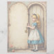 Ontgrendel het volgende hoofdstuk van je creativiteit met dit charmante papier met een vintage Alice in Wonderland scène. Het toont Alice met een sleutel in de hand, klaar om een fantasiewereld binnen te gaan door een open deur, met charmante rozen aan haar voeten. Met onbeperkte creatieve mogelijkheden is dit papier perfect voor uitnodigingen, scrapbooking, junk journaling en andere gepersonaliseerde projecten. Gedrukt in hoge kwaliteit, in full colour op dun mat papier, is het ontworpen om een scherpe, professionele look te geven aan je persoonlijke of zakelijke poststukken. Voeg persoonlijke foto's en tekst toe zonder extra kosten, waardoor het een veelzijdige en memorabele aanvulling is voor elk project.