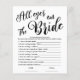 Alle ogen op de bruid eenvoudige bruids spel - hier is een van de gemeenschappelijke vrijgezellenfeest spel om uw gasten hebben een goede tijd te maken. Omdat het is voorbereid als een sjabloon kunt u het personaliseren volgens uw wensen / behoeften. VOOR MEER SPELLEN MET HETZELFDE ONTWERP schrijf G317 in het zoekvak van mijn winkel. Bedankt voor een bezoek aan mijn winkel. In hoesje heb je iets nodig over design, neem dan vrijblijvend contact met me op: szdesigns2021@gmail.com