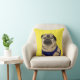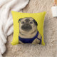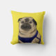 Een schattig geïllustreerd kussen met een mopshond genaamd Arnold uit het boek "Just Me" van Ian M. Snyder