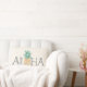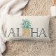 Onze tropische typografie kussen in warm gebroken wit is voorzien van de Hawaiiaanse begroeting "Aloha" in donkergrijs-blauw letters, met een ananasafbeelding in plaats van de O.