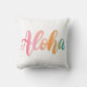 Tropische typografische kussen zijn voorzien van de Hawaiiaanse groet "Aloha" in een leuke feestelijke gradiënt van zomerkleuren - roze, koraal, oranje en waterblauw op een witte achtergrond.
