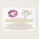 Alors Parties scintillant rose lèvres et Elegant Gold Designer Instructions d'application. Recherchez des cartes de tailles différentes et plus de couleurs. Plus de couleurs disponibles. ( Mot-clé : lèvres de Parties scintillant ) 100% personnalisable. Prêt à remplir dans la ou les cases ou Cliquez sur le bouton PERSONNALISER pour ajouter, déplacer, supprimer, redimensionner ou modifier une police ou un graphique. Fabriqué avec un vecteur haute résolution et/ou des graphiques numériques pour une impression professionnelle. REMARQUE : (IL S'AGIT D'UNE IMPRESSION. Toutes les conceptions de produits zazzle sont des "impressions" sauf indication contraire dans la zone "A propos de ce produit") Le design sera imprimé EXACTEMENT comme vous le voyez à l'écran et sur le produit...par conséquent, assurez-vous que lorsque vous effectuez vos modifications sur le redimensionnement d'un graphique ou d'un texte qui s'insère correctement dans les zones et que votre orthographe et votre libellé sont ceux qui vous plaisent dans la taille, la couleur et la police. Si vous avez des questions sur ce design, veuillez me contacter à l'adresse siggyscott@comcast.net ou visiter le lien de mon magasin : http://www.zazzle.com/designsbydonnasiggy?rf=238713599140281212 (Copier et Coller) Je serai heureux de vous aider. Merci pour le support et l'arrêt par mon magasin - DesignsbyDonnaSiggy. © Donna Siegrist