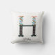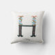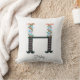 Un oreiller à lancer de sauce comporte une illustration originale de gouache de l'alphabet floral avec un nom personnalisable en bas.