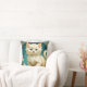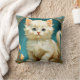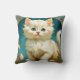 Kussen met een witte kat in de Art Nouveau stijl van Alphonse Mucha! Een pluizige witte kat staart breed naar de kijker tegen een blauwe achtergrond. Een geweldig cadeau voor kattenliefhebbers en Art Nouveau verzamelaars!