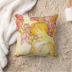 Alphonse Mucha Iris pillow. Olieverf op canvas. De Tsjechische schilder Alphonse Mucha schilderde een allegorische serie waarin verschillende bloemen als mooie vrouwen worden afgebeeld. Iris heeft een aantrekkelijke bruine jurk met een dunne jurk. De vrouw is omringd door grote paarse irissen die de gele en blauwe achtergrond beklimmen. Een groot geschenk voor fans van Mucha, de nieuwe kunst en de zogenaamde bloemschilderijen.