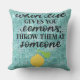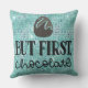 Dit unieke kussen heeft een faux glitter blauwgroen achtergrond aangevuld met een unieke tekst die luidt: "Als het leven je citroenen geeft, gooi ze naar iemand" De achterkant van dit kussen luidt: "Maar eerst, chocolade", waardoor dit een ideaal ontwerp is voor die chocolade en sarcastische persoon in je leven!