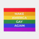 Dit kunstwerk kenmerkt een regenkom en de uitdrukking "maak Amerika opnieuw Gay".