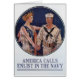 Dit poster voor de Amerikaanse marine werd in 1917 gedaan door Joseph Christelijk Leyendecker. Lady Liberty staat met een zeeman in een wit uniform die zijn hand vasthoudt. De titel luidt: "Amerika belt, Enlist bij de marine."