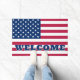 © Socialite Design Inc. Welkom gasten met patriottische flair met behulp van deze aanpasbare Amerikaanse vlag deurmat! Met gedurfde sterren en strepen in klassiek rood, wit en blauw, voegt deze duurzame buitenmat een warme, volledig Amerikaanse touch toe aan uw veranda of ingang. Personaliseer de "Welcome" -tekst om deze uniek voor u te maken - ideaal voor het vieren van nationale feestdagen, het eren van een servicelid of gewoon het hele jaar door trots zijn op de VS. Een geweldig cadeau voor veteranen, militaire families of patriottische huiseigenaren die een verklaring willen afleggen voor hun deur.