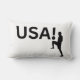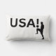 Amerikaanse voetballer met behulp van stip van uitroepteken als een bal. Zwart afbeelding op witte achtergrond