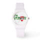 Een prachtig wit unisex horloge met de gewaagde Italiaanse woorden, "Amore Gesù" (Love Jesus in het Engels) geschreven in het midden.