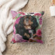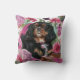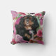 Le roi cavalier noir et tan charles spaniel chien coussin d'art chien avec arrière - plan floral en rose et vert.