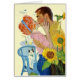 Artiste : Dame rousse de Bernard D'Andrea | embrassant l'homme derrière des tournesols avec une chaise bleue et un chat.