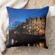 Foto gooit het kussen met de romantische oude huizen van Amsterdam, gebouwd langs het kanaal van Prinsengracht, met reflectie van de lichten in het stilstaande water aan het begin van de nacht in de hoofdstad van Nederland.