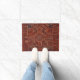 Anatolische tapijt look deurmat - geometrische tribal patroon in warme kleuren. Het zal zeker een aanraking van elegantie en gezelligheid aan om het even welke ruimte toevoegen. Traditioneel tapijtontwerp met klink - haken en diamantvorm op het centrumgebied. Het is typisch in het gebied van Bergama, Turkije. De antiek afbeelding werd bewerkt door Alma Wad. BEDRUKTE deurmat.
