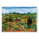Peinture à l'huile de Bulgan Lumini (c)Paysage toscan, coloré, vibrant, beauté expressive de la campagne italienne, collines vertes, pavots, champs de fleurs, ancien village rustique, peinture acrylique dans les couleurs jaune vif, orange, rouge, bleu, 2008 Toscane-Italie
