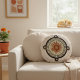 Beautiful decorative round pillow featuring an Aztec art sun face and illustrations with text. Beautiful vintage art with a boho style fusion vibe. Adds an artistic flare and a breath of ancient culture to your home. Consider it as also as a stylish gift for an artistic person's housewarming.