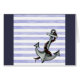 Aquarelle originale peinte par Sandra Gale, avec une ancre métallique audacieuse et une grande corde enroulée autour. Des bandes translucides peintes horizontalement font un arrière - plan nautique aquatique pour ce design d'été. Idéal pour la plage et le rivage !