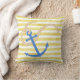 Coussin nautique d'aquarelle jaune de rayure avec l'ancre bleue