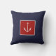 Ancrage nautique lancer l'oreiller. Bleu de marine avec une ancre blanche dans un carré rouge.