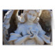 Deze briefkaart bevat een originele foto van een tuinengel die een vogel vasthoudt. Het is leeg binnenin om je eigen bericht toe te voegen.