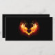 Engel vuurhart met vlammende vleugels op zwarte achtergrond.