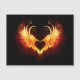 Engel vuurhart met vlammende vleugels op zwarte achtergrond.