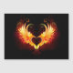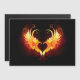 Engel vuurhart met vlammende vleugels op zwarte achtergrond.