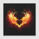 Engel vuurhart met vlammende vleugels op zwarte achtergrond.