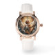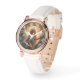 Mooie engel met een harp terwijl hij naar boven kijkt, is te zien op dit horloge voor vrouwen. Roos gouden horloge met wit lederen band heeft gesp. Gebruik jezelf of geef cadeau, een manier om tijd te houden!
