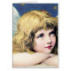 Een schattige en zoete engel ziet er heel erg uit als ze rust. Er is een blauwe hemel op de achtergrond vol sterren.
