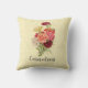 De blik werpt kussen met botanische illustratieeigenschappen boeket van anjers in een verscheidenheid van kleuren. De achtergrond heeft de blik van de ecru burlap.