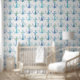 ankers in blauw en groene kleuren van zee en lucht op wit maken een prachtig nautisch en zee thema behang ideaal voor een strandhuis, badkamer, kinderkamer of kinderdagverblijf.