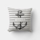 Zwart anker op grijze en witte strepen nautisch zomerkussen. Dit trendy nautische ontwerp toont een anker in stijl en jouw naam op een wit lijst. U kunt naam, lijst of anker verwijderen om slechts een gestreept kussen te hebben.