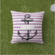 Zwart anker op lavendel paarse en witte strepen nautische zomer outdoor kussen. Dit trendy nautische ontwerp toont een anker in stijl en jouw naam op een wit lijst. Als u wilt kunt u naam, lijst of anker verwijderen om alleen een gestreept kussen te hebben.
