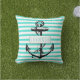 Zwart anker op turquoise en witte strepen zeemijl in de zomer. Dit trendy nautical ontwerp toont een stijlanker en jouw naam op een wit lijst. Als u zou willen dat u naam, lijst of/en anker kon verwijderen om enkel een gestreepte kussen te hebben.