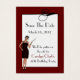 Joli style Art déco Enregistrer les annonces d'anniversaire de la date, faites en rouge, noir et blanc. Une belle oeuvre numérique d'un flapper rugissant des années 20 orne le bas à gauche de la carte, avec un cadre rouge foncé autour de la zone de texte blanc et un défilement décoratif noir fleurit en haut. Le texte en noir et rouge est entièrement personnalisable selon vos besoins.