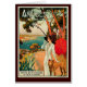 Vintage-poster voor Antibes, op de Franse mediterrane Cote d'Azur, die dag en nacht snelle treinen ter beschikking stelt. Pas het binnenbericht aan of laat leeg.
