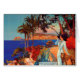 Franse en Europese reisadvertenties - Beer, dorp, dame, hond, bomen, blauw zee en hemel