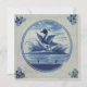 Een heel mooi oud afbeelding van een originele antiek Delft Tegel. Hier is een flapende eend, die opstijgt of op het water landt. Delftware, of Delft potterij, duidt op blauw en wit aardewerk dat in en rond Delft in Nederland wordt gemaakt en op de tint-glazuur dat in Nederland vanaf de 16e eeuw wordt gemaakt. Het omvat aardeobjecten van alle beschrijvingen zoals borden, ornamenten en tegels. Dit is een getrouwe fotografische weergave van een origineel tweedimensionaal (vlak oppervlak) kunstwerk. Het kunstwerk zelf is in het publieke domein omdat het auteursrecht is verstreken. Het is digitaal bewerkt en verbeterd.