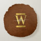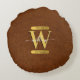 Antiek Faux-leder en goudmonogram Rond Kussen
