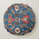 Antiek, oosterachtig Perzisch, Turks tapijt, blauw Rond Kussen